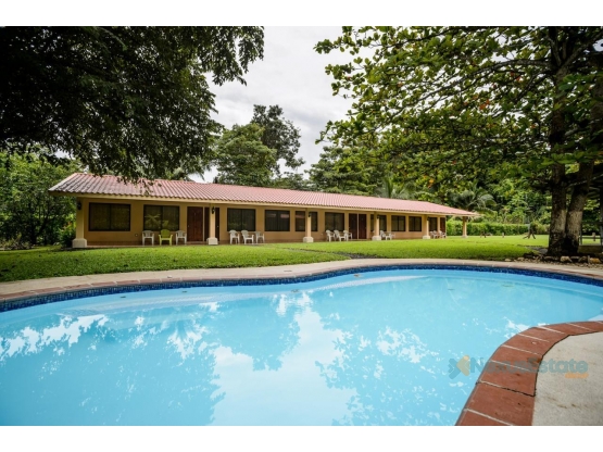 La propiedad cuenta con diversas edificaciones distribuidas estratégicamente entre amplias zonas verdes y áreas de descanso: